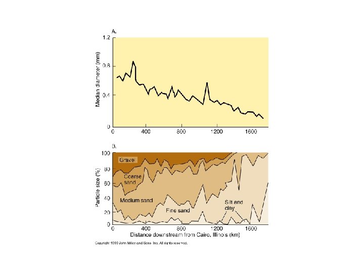 Upstream Downstream Discharge Occupied channel width Channel depth Average velocity Load quantity Load particle size Channel bed roughness Slope angle (gradient) Load Particle Size • Decreases considerably downstream. • Angular pebbles become more rounded. • Attrition.