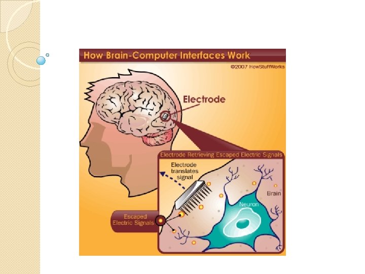 Applications • Control robots that function in dangerous or inhospitable situations (e. g. , underwater or in extreme heat or cold). • Create a feedback loop to enhance the benefits of certain therapeutic methods. • Develop passive devices for monitoring function, such as monitoring long-term drug effects, evaluating psychological state, etc. • Monitor stages of sleep