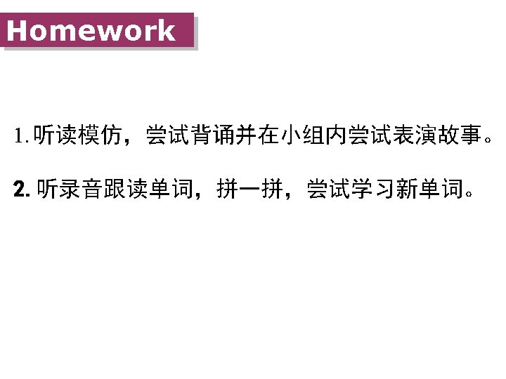 Read the dialogue. 1. I can read the story correctly. 我能正确地朗读。 2. I can read it with emotions fluently. 我能流利、有感情地朗读。 3. I can say the story with pictures. 我能借助图片说一说整个故事 。