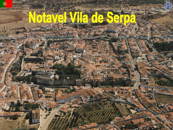 Brasão de Armas Escudo azul com castelo lavrado em prata, aberto e iluminado de negro, sobre uma serpe alada de prata, realçada a negro. Coroa com mural de prata de 4 torres. Listem branco com os dizeres, a negro: “NOTÁVEL VILA DE SERPA”