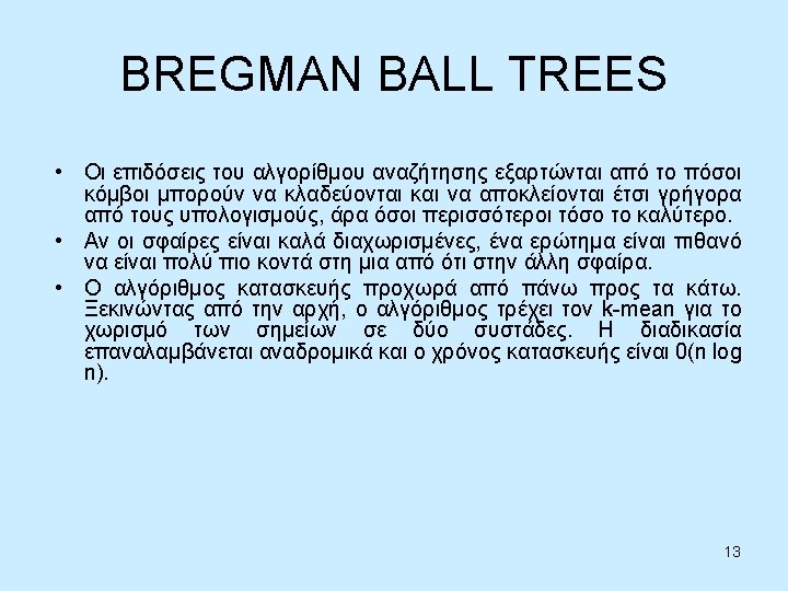 BREGMAN BALL TREES Bregman Balltree construction algorithm Recursive