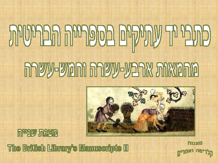 : מקורות http: //www. bl. uk/onlinegallery/hightours/index. html http: //www. bl. uk/onlinegallery/sacredtexts/sacredthemesall. html http: //www. bl. uk/reshelp/findhelprestype/manuscripts/msscatalog http: //idp. bl. uk/archives/news 29/idpnews_29. a 4 d http: //www. imagesonline. bl. uk/gallery. asp http: //www. bl. uk/catalogues/illuminatedmanuscripts/Tour. Intro. Gen. asp http: //dunhuang. mtak. hu/index-en. html http: //londonist. com/2008/08/into_the_bowels_of_the_british_libr. php http: //www. bl. uk/treasures/gutenberg/homepage. html http: //www. british-library. uk/catalogues/illuminatedmanuscripts http: //www. imagesonline. bl. uk/results. asp? W=4&F=0001&Step=1 http: //bestiary. ca/ http: //www. bl. uk/ramayana http: //www. imagesonline. bl. uk/results. asp