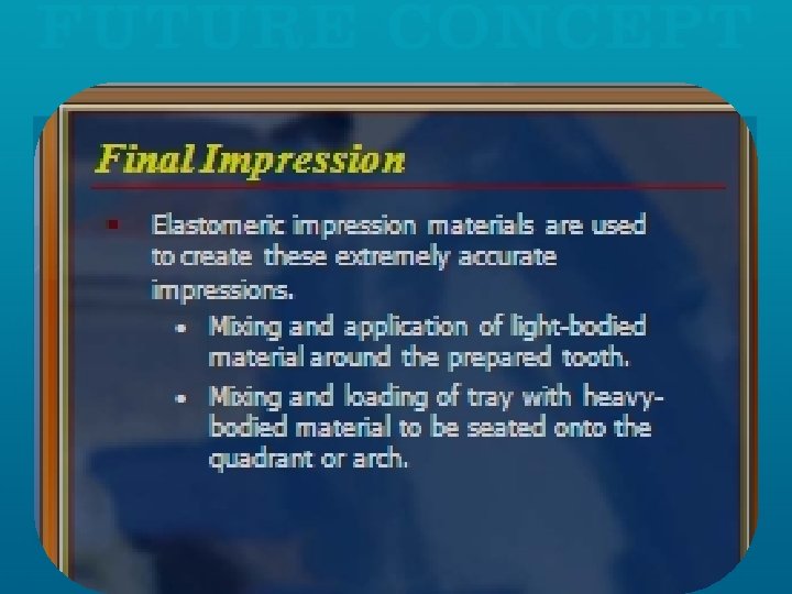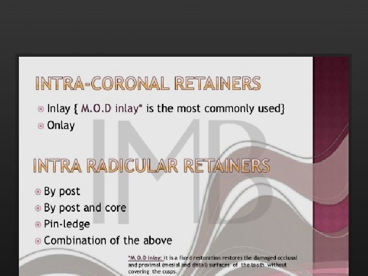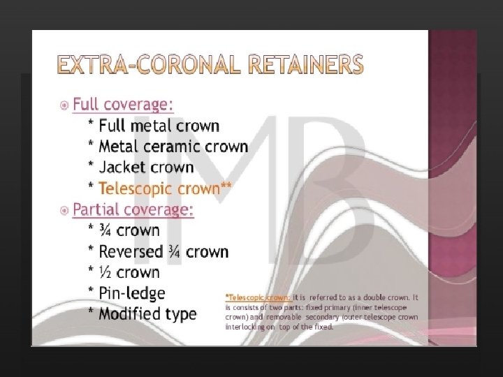 Ø Ø Harmony with healthy gingival tissues Harmony between facial features and crown contour Ø Restoration of natural coloring