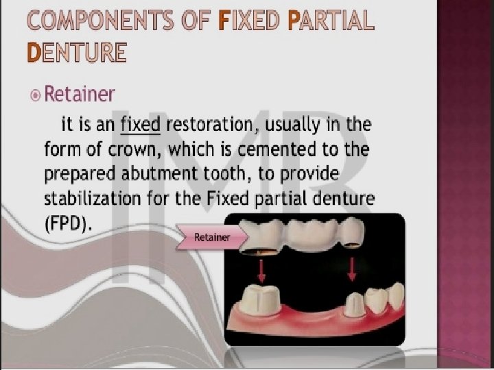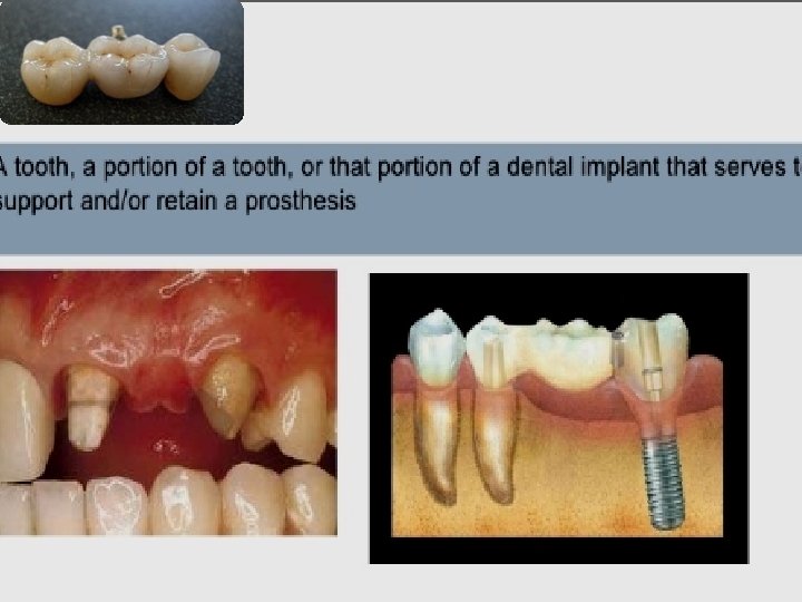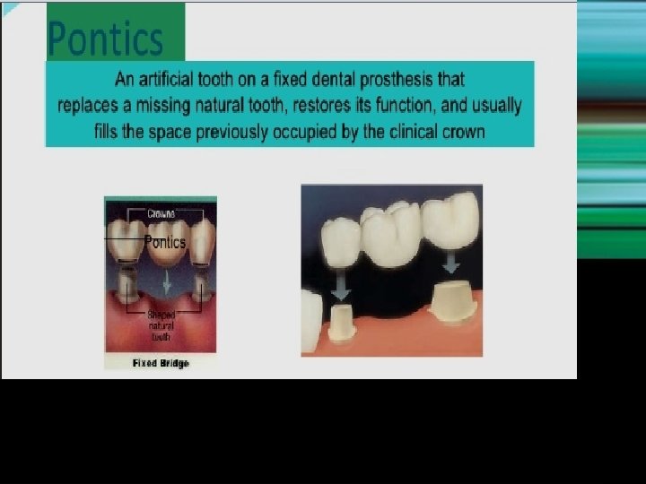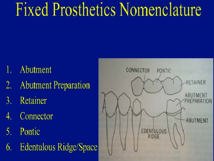Fixed partial denture “bridge” connector pontic retainer Abutment preparation abutment