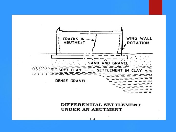 Piers/ Abutments n Inadequate/abnormal clearance between ballast wall and end girder leaning, n bulging of abutments Abnormal level difference Tilting of pier Unequal Sinking n of foundation Crack pattern Uneven n settlement Weathering settlement