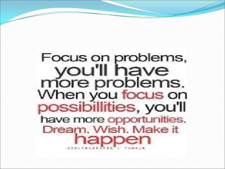A Solution focussed question has 2 key qualities: 1. It focuses on solutions, not problems 2. So long as you can answer it, the answer will probably eliminate the problem