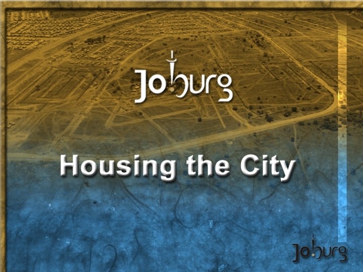 Introduction Johannesburg’s Population • 791 000 Households • 33% Households housed in less adequate accommodation • 170 115 Living in Settlements • 108 000 Living in backyard shacks Most Important Concerns articulated by residents of Johannesburg 1. Jobs 2. Housing Backlog -120 000 Estimated Family Formation by 2010 • 101 940 - 144 751 Households earning R 3 500