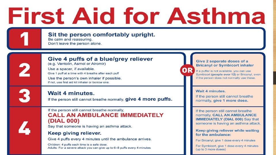 OTHER SYMPTOMS OF ASTHMA • • Palpitation Mucus production Weakness Tiredness after exercise Sneezing, nasal congestion, sore throat Sleeping disorder Difficulty in speaking