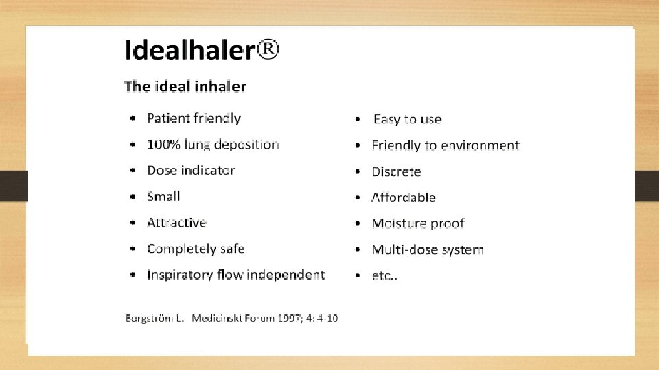 TREATMENT • • • Rotahaler Pressurised meter dose inhaler(PMDI) PMDI with dose counter Spacer with MDI Revolizer Nebulizer