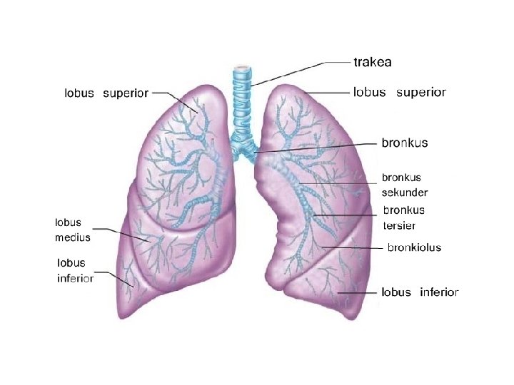 • Terdapat sepasang paru-paru, yaitu: – Paru-paru kanan, terdiri atas 3 lobus 1. Lobus Superior 2. Lobus Medius 3. Lobus Inferior – Paru-paru kiri, terdiri atas 2 lobus 1. Lobus Superior 2. Lobus Inferior