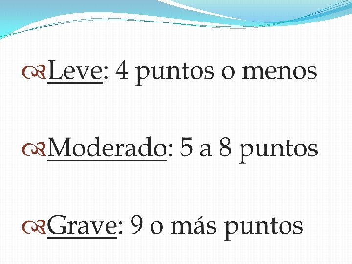 Clasificación según gravedad Leve Moderada Severa