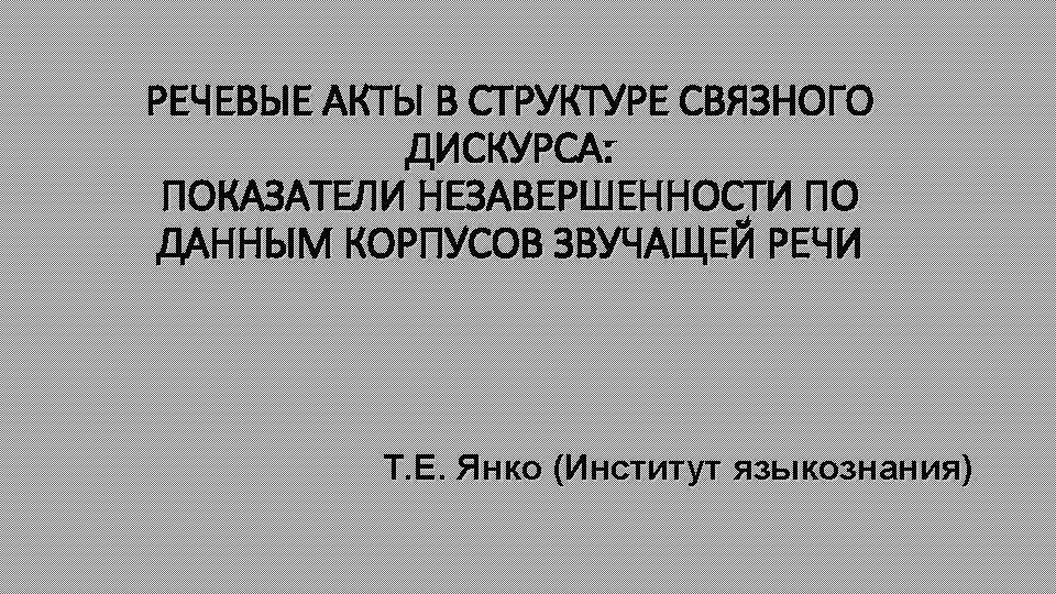 Литература Bryzgunova E. A. (1982) Intonation [Intonatsiya], Russian Grammar [Russkaya grammatika]. Vol. 1, Nauka, Moscow, pp. 98 -118. Bryzgunova E. A. (2003) Intonation and Syntax [Intonatsiya i sintaksis] // V. A. Beloshapkova (ed. ). Modern Russian [Sovremennyj russkij jazyk]. Mоscow: Azbukovnik, P. 869 -903 Boersma P. , Weenink D. (2012). Praat: Doing phonetics by computer. Version 5. 3. 04. Online: http: //www. praat. org/. Kibrik A. , Podlesskaja V. (2009) Nightdream stories: A corpus-based study of spoken Russian discourse [Rasskazy o snovidenijah: Korpusnoe issledovanie ustnogo russkogo diskursa]. Moscow: Jazyki slavjanskih kul’tur. Kobozeva I. M. (1999) On illocutionary independence of clauses in complex sentences [O kriterijah illokutivnoj samostojatel'nosti chastej slozhnogo predlozhenija] // Proceedings of the International Conference “Dialog 99” [Trudy mezhdunarodnoj konferencii «Dialog 1999» ]. P. 133 -137. Kobozeva I. M. (2005) An essay in characterizing lexical-syntactic, semantic, and pragmatic properties of interrogative dialogical turns in terms of features [Opyt razrabotki priznakovoj bazy dlja harakteristiki leksiko-sintaksicheskih, semanticheskih i pragmaticheskih svojstv voprositel'nyh replik] // Proceedings of the International Conference “Dialog 2005” [Trudy mezhdunarodnoj konferencii «Dialog 2005» ]. P. 238– 244. Kodzasov S. V. , Bonch-Osmolovskaja A. A. , Zaharov L. M. , Kobozeva I. M. , Krivnova O. F. (2005) Data Base ‘Intonation of Russian Dialogue: Interrogative Phrases’ [Baza dannyh «Intonacija russkogo dialoga» : voprositel'nye repliki] // Proceedings of the International Conference “Dialog 2005”. P. 245 -247. Kodzasov S. V. , Arhipov A. V. , Bonch-Osmolovskaja A. A. , Zaharov L. M. , Krivnova O. F. (2006) Data Base ‘Intonation of Russian Dialogue: Commanding Propositions’ [Baza dannyh «Intonacija russkogo dialoga» : pobuditel'nye repliki] // Proceedings of the International Conference «Dialog 2006» . P. 236– 242. Krejdlin G. E. , Baranov A. N. (1992) On illocutionary imposing in the structure of dialogue [Illokutivnoe vynuzhdenie v strukture dialoga] // Problems of linguistics [Voprosy jazykoznanija]. № 2. P. 84 -99. Podlesskaya V. (2016) “No po raschotu po moemu dolzhna rodit”: the Russian Conjunction PO viewed through the prism of prosodically annotated corpus data // Computational Linguistics and Intellectual Technologies. Papers from the Annual International Conference “Dialogue” (2009), P. 574 -579. Russian Grammar (1982) [Russkaya grammatika]. Vol. 2. Moscow: Nauka. Spokencorpora 2017. Prosodically Annotated Corpus of Spoken Russian. Pilot version. Online: http: //spokencorpora. ru. Yanko T. (2008) Intonational strategies of the Russian speech from a contrastive perspective [Intonatsionnye strategii russkoj rechi v soposnaviteljnom aspekte]. Moscow: Jazyki slavjanskih kul’tur. Yanko T. E. (2017) Word Order and Accent Placement in Topics, Foci, and Markers of Discourse Continuity // Oslo Studies in Language. Comparative Slavic Syntax and Semantics. Vol 9, No 1. Pp. 45 -57. Zwicky A. (1974) Hey, whatsyourname! Chicago: Chicago Linguistics Society. 14