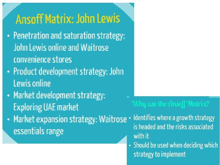 Ansoff’s Matrix Learning Objective: To know the role of marketing and the marketing techniques used in two businesses