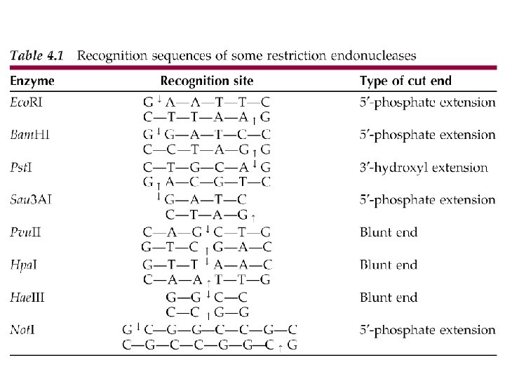 Restriction Enzymes • Most significant advancement permitting r. DNA manipulation • Differ from other nucleases – recognize and cleave a specific DNA sequence (Type II restriction enzymes)