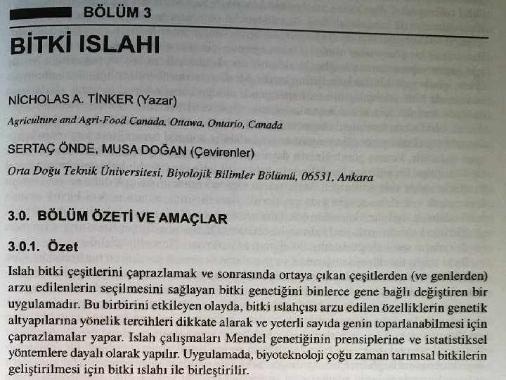 GİRİŞ • “Ülke için en önemli hizmet -> faydalı bitki çeşidi” » Bir ABD başkanı? – Modern tarımsal üretkenliğin üçe katlanması (Hoisington, 1999) – Yiyecek, meyve, dayanıklı kumaş, güzel kokulu gül … – Hepsi seçile (ıslah ile) elde edilmiş – Gelecekte uzun (kaliteli) yaşama? – Üst düzey öğrenme / uygulama deneyim ve becerisi – Üniversiteler ve tarım kuruluşları ihtiyaca rağmen azlıktan endişeli – Kitaptaki biyoteknolojik kavramlar yeni veya inovasyon