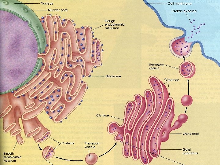 Functions • Provides a large surface area on which chemical reactions can take place. • It synthesizes lipids, phospholipids and steroid. • It also carries out the metabolism of carbohydrates, drug detoxification. • Attachment of receptors on cell membrane proteins. • RER involved in protein synthesis