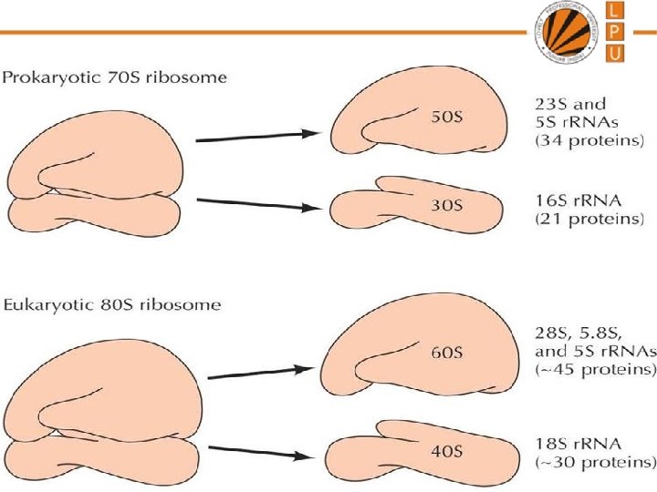 Ribosomes • Ribosomes are RNA-protein complexes composed of two subunits that join and attach to messenger RNA. • Site of protein synthesis • Each ribosome is divided into two subunits: the smaller subunit and the larger subunit