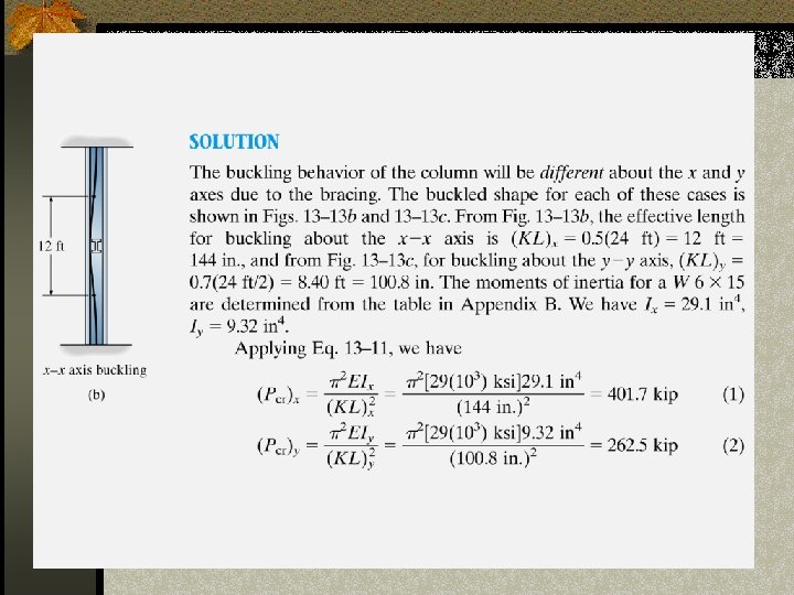 Note on Moment of Inertia n Since Pcrit is proportional to I, the column will buckle in the direction corresponding to the minimum value of I