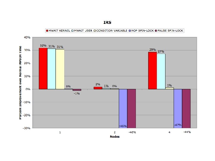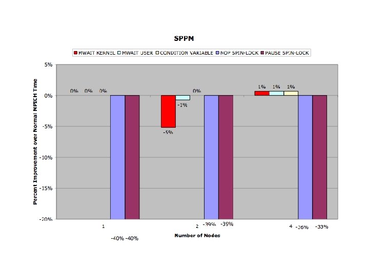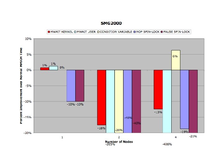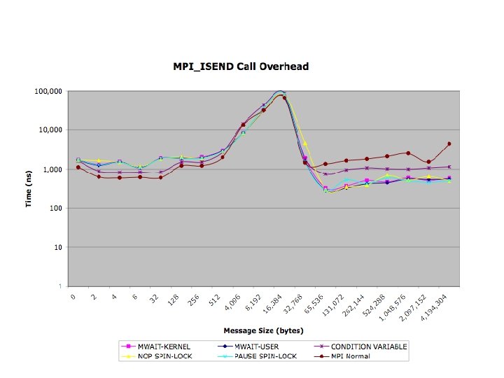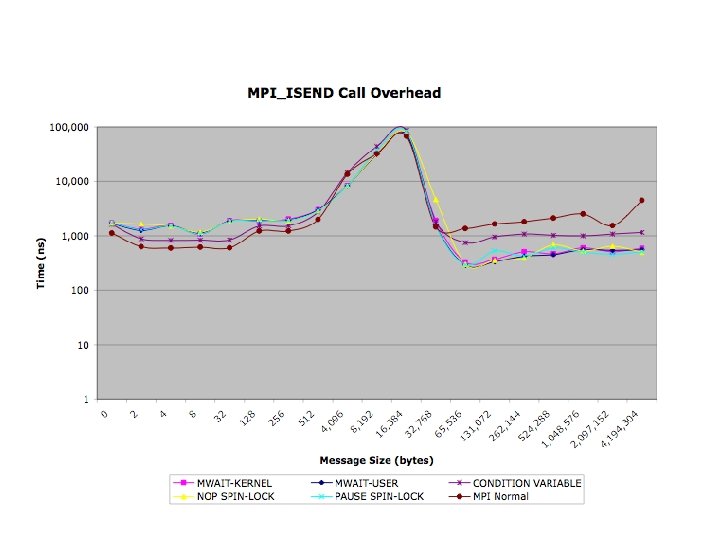 Modified MPICH DESIGN Helper Thread Primary/Master Thread void main() { MPI_Isend(args); . . . } MPI_Isend(args) { return enqueue(args); } CPU 1 SMT Threadvoid SMT_LOOP( ) { while (! done) { do { checkt. For. Request(); check. For. Network(); } while (no_request); action = dequeue. Request( ) retvalue = action->function(args); } } MPI_Isend_SMT( args ) {. . . return 0; CPU 2 }