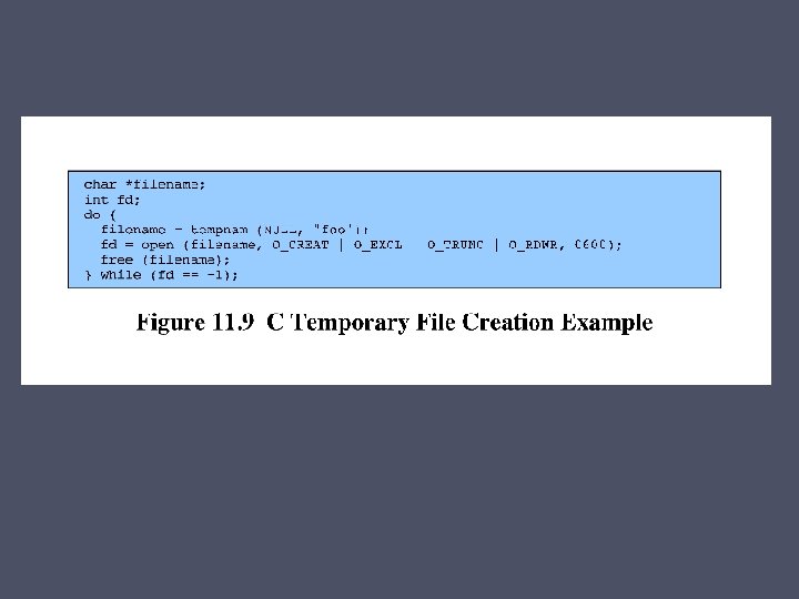 Safe Temporary Files • • Many programs use temporary files Often in common, shared system area Must be unique, not accessed by others Commonly create name using process ID o Unique, but predictable o Attacker might guess and attempt to create own file between • program checking and creating Secure temporary file creation and use requires the use of random names