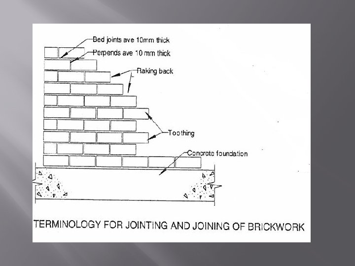 POINTING AND JOINTING “Pointing” is the term used to describe the filling of dagha joints in the bed and perpendicular joints of brickwork. Pointing and jointing are carried out for the following two reasons: to ensure that there are no gaps in the joints and that they are watertight to decorate the wall so that it has a specific desired appearance
