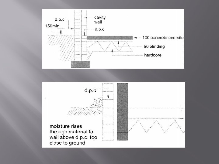 Damp-proofing Before starting to construct the superstructure of a building, a damp-proof course has to be placed on top of the floor slab. This is very important, as the construction below ground floor is vulnerable to dampness from water that soaks into the ground. It is thus a barrier that separates the brickwork below ground from the brickwork above. Due to the importance of this section a short summary of the Grade 10 work on damp proofing for walls is hereby given.