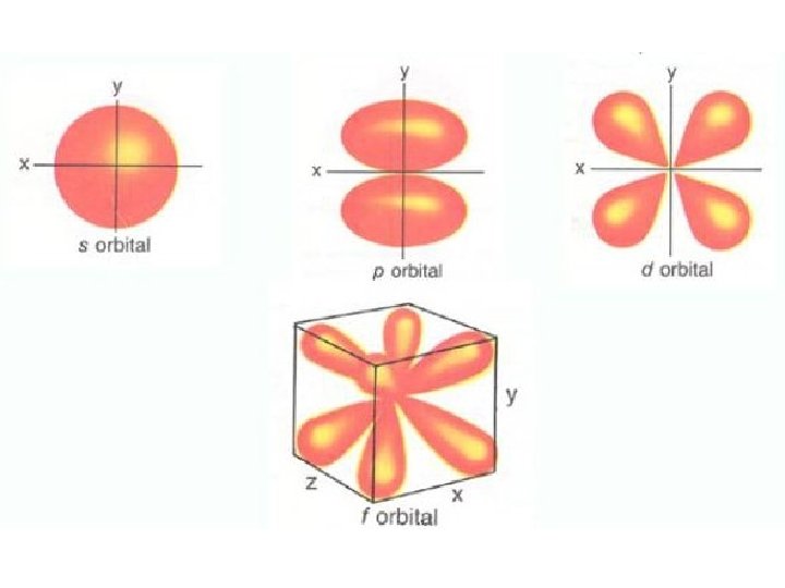 The Secondary Quantum Number “ℓ ” • Describes the shape of the orbital • Atoms with many electrons showed spectrum with many lines, some close together and others spaced apart • Subshells within the main energy levels • Each subshell has a different shape with the highest probability of finding an electron