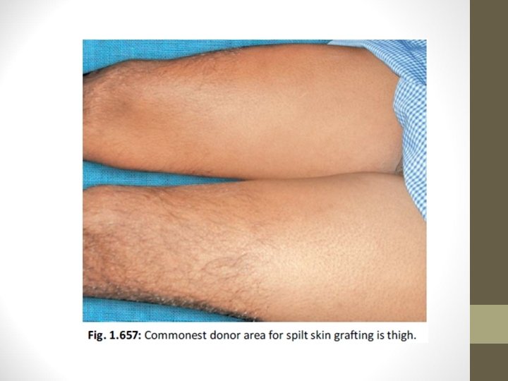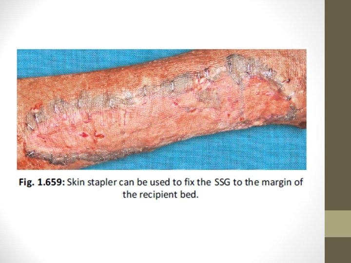 Technique • It is removed using scalpel blade • Underlying fat should be cleared off properly • Deeper raw donor area is closed by primary suturing • If large area of graft is taken, then that donor area has to be covered with SSG