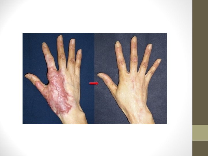 • Joint exercise in full range during recovery • Pressure garments • Topical silicone sheeting • Saline expanders for scars