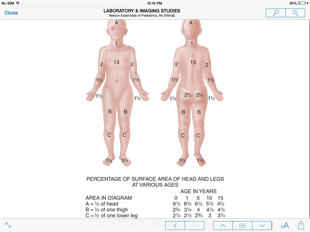 • Burns can be classified as major or minor for treatment purposes. • Major burns consist of • those covering more than 15% of body surface area (>10% in infants), • involving the face or perineum, or • those involving inhalation injury. • Second-degree and third-degree burns of the hands or feet and circumferential burns of the extremities also are classified as major. • The extent of skin involvement of older adolescent and adult patients is estimated as follows: each upper extremity, 9%; each lower extremity, 18%; anterior trunk, 18%; posterior trunk, 18%; head, 9%; and perineum, 1%. • The location of the burn is important in assessing the risk of disability. • The risk is greatest when the face, eyes, ears, feet, perineum, or hands are involved. • Inhalation injuries not only cause respiratory compromise but also may result in difficulty in eating and drinking.
