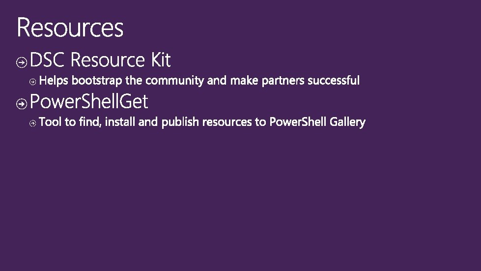 Wave 0 Archive Environement File Group Log Package Registry Script Service User Windows. Feature Windows. Process Wave 2 Wave 1 x. ADDomain x. Computer x. DNSServer. Address x. ADDomain. Controller x. ADUser x. Dsc. Web. Service x. Cluster x. IPAddress x. Firewall x. VHD x. Smb. Share x. VMHyper. V x. Sql. Endpoint x. VMSwitch x. Sql. HAEndpoint x. Website x. Sql. HAGroup x. Sql. Server. Install x. Vhd. File x. Wait. For. Cluster x. Wait. For. Domain x. Wait. For. Sql. HAGroup Wave 3 x. Archive x. Database x. DBPackage x. Endpoint x. IEEsc x. Package x. RDRemote. App x. RDSession. Collection. Configuration x. RDSession. Deployment x. Remote. File x. Service x. UAC x. Web. Application x. Web. App. Pool x. Web. Config. Key. Value x. Web. Virtual. Directory x. Windows. Process