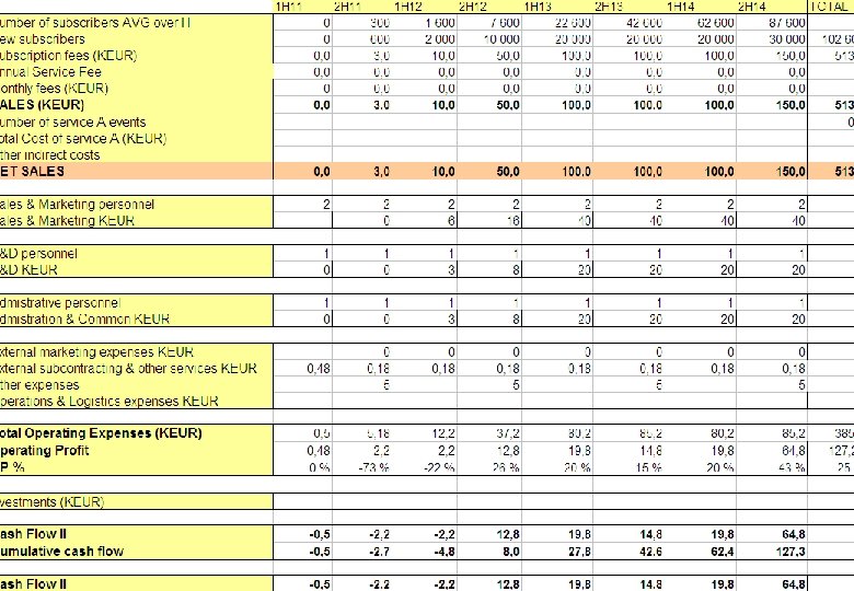 Financial �Based on line 2: Price: 5 € Cash flow forecast: ▪ Negative cash flow for 18 months ▪ Tekes funding covers cumulative deficit of 4 800 € �See following charts for further details