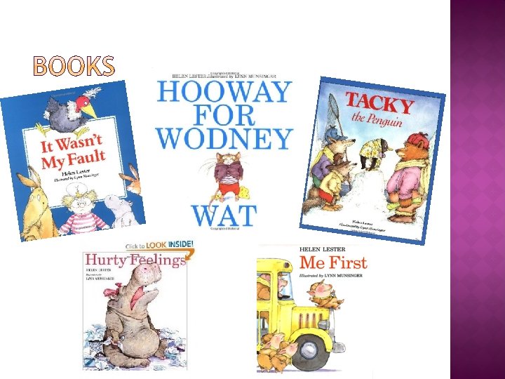 The Wizard, The Fairy, And The Magic Chicken � It Wasn't My Fault � A Porcupine Named Fluffy � Pookins Gets Her Way � Tacky The Penguin � Me First � Three Cheers For Tacky � Listen Buddy � Princess Penelope's Parrot � Tacky In Trouble � Author and Illustrator: A True Story � Hooway For Wodney Wat � Score One For The Sloths �