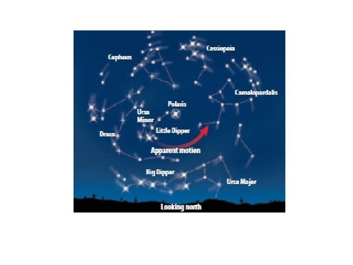 Circumpolar Constellations • As Earth rotates, Ursa Major & Ursa Minor and other constellations in the northern sky circle around Polaris. • They appear to move because Earth is rotating. • The stars appear to complete one full circle about 24 hours. • Visible all year long due to their unique position.