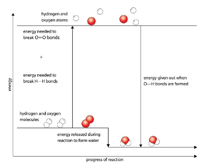 Calculating energy change • Calculate energy used in breaking bonds • Calculate energy formed from formation of bonds • Calculate difference (- means exothermic) • Formation of steam or hydrogen halides