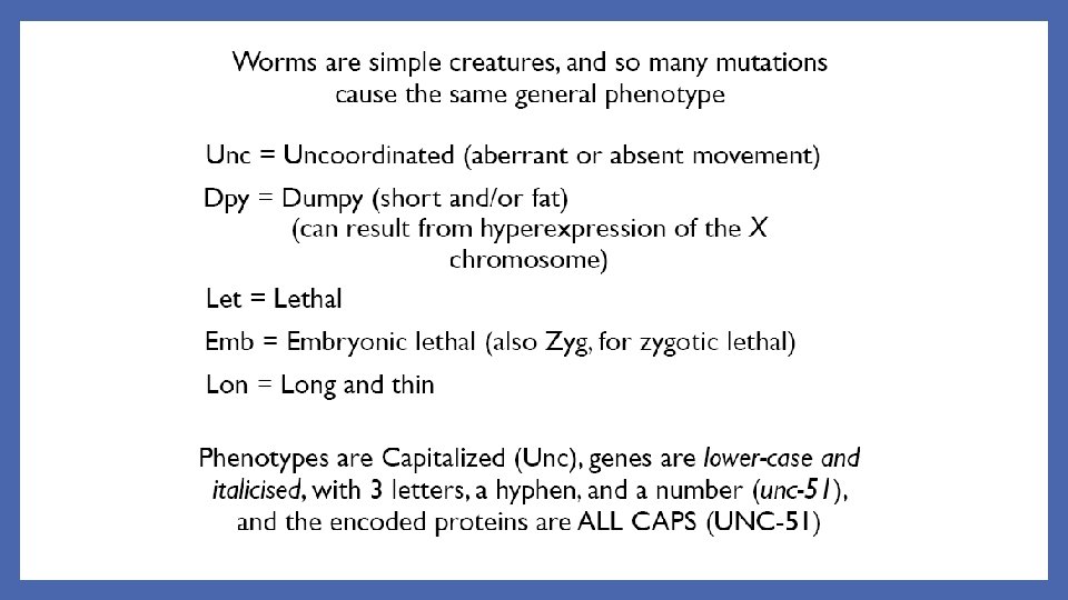Male Worms • Only occur in 0. 1 -0. 2% of “normal” stocks • Although there are ways to breed more males • Through mating or him mutations