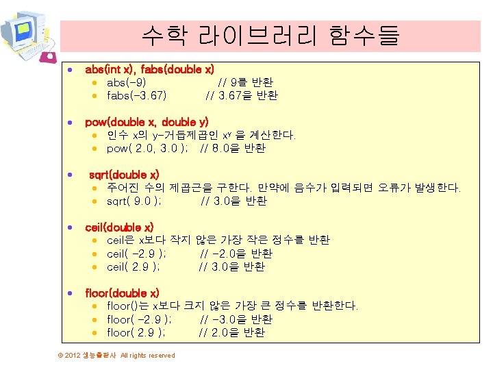 함수의 종류 © 2012 생능출판사 All rights reserved