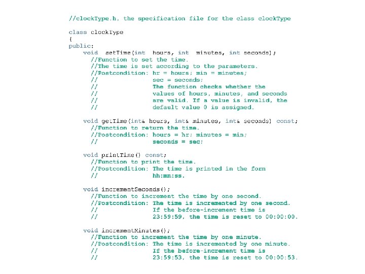 Classes (continued) These functions cannot modify the member variables of a variable of type clock. Type const: formal parameter can’t modify the value of the actual parameter private members, can’t be accessed from outside the class C++ Programming: From Problem Analysis to Program Design, Fourth Edition 7
