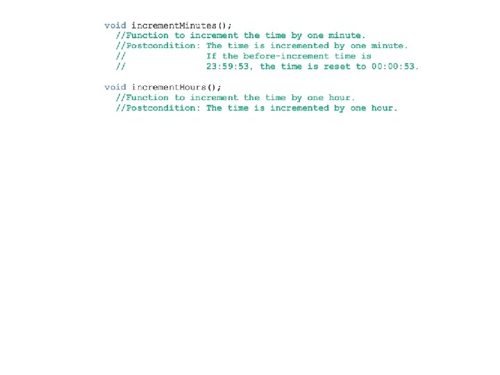 Information Hiding (continued) • Precondition: a statement specifying the condition(s) that must be true before the function is called • Postcondition: a statement specifying what is true after the function call is completed C++ Programming: From Problem Analysis to Program Design, Fourth Edition 55