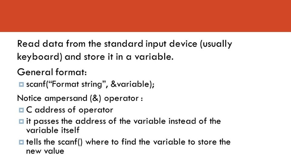 ![Scanf – specification for strings %[characters] means that only the characters specified in the Scanf – specification for strings %[characters] means that only the characters specified in the](https://slidetodoc.com/presentation_image_h2/535e799f3a816eeb2bdc8492d17fa708/image-6.jpg)