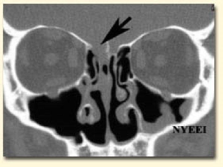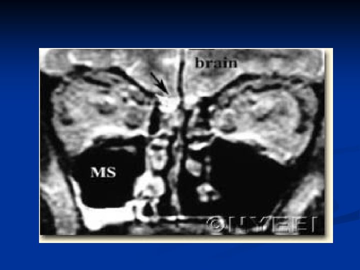 Cont…. n Sites commonly involved in the anterior cranial fossa are Cribriform plate (commonest ) Fovea ethmoidalis Posterior wall of frontal sinus