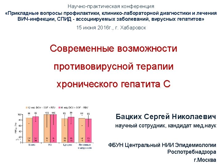 Безинтерфероновые варианты лечения хронического гепатита C (генотип 1 HCV) • Sofosbuvir/ ledipasvir ± ribavirin • Sofosbuvir/ velpatasvir • Grazoprevir/ elbasvir • Sofosbuvir + ribavirin • Sofosbuvir + simeprevir ± ribavirin • Sofosbuvir + daclatasvir ± ribavirin • Daclatasvir + asunaprevir • Paritaprevir/RTV/ ombitasvir + dasabuvir ± ribavirin