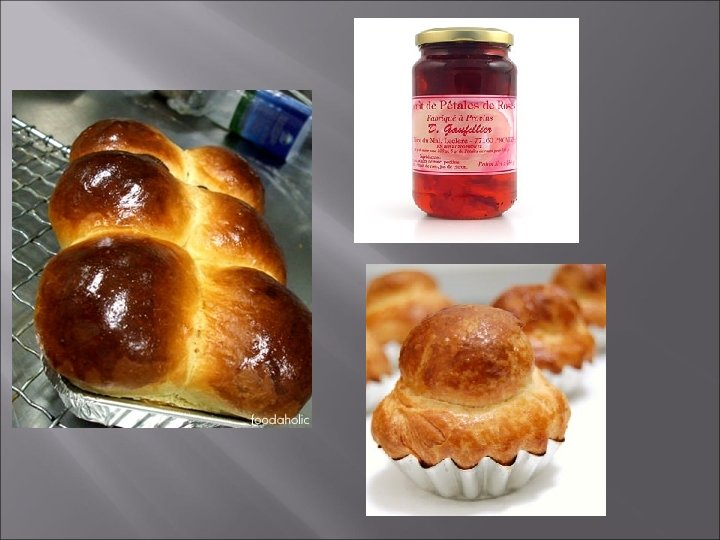 Traditional Dishes of Ile de France Sweets and Desserts Provins rose jam - A delicious jam made from rose petals Sablé briard - These little shortbreads from Brie are made with cider Brioche – French bread dough enriched with egg and butter and part of the “Viennoiserie”. (Breakfast pastries) Due to its sweet and butter flavor and consistency it is often baked with chocolate chips or glazed and served as a cake. The brioche is believed to be an abbreviation of a Norman recipe. Nanterre Brioche – loaf brioche with very high percentage of butter