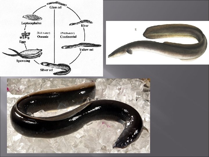 Products of Pays de Loire – Anguille - Eel True eels belong to the Anguilliforms family of fishes and consist of both freshwater and saltwater species. There are many different varieties of eels (600) and sizes range from rue eels 5 centimeters (one-jawed eel ) to 3. 75 meters (giant moray). They possess no pelvic fins, and many species also lack pectoral fins. The dorsal and anal fins are fused with the tail fin, to form a single ribbon running along much of the length of the animal. Most true eels prefer to dwell in shallow waters or hide at the bottom layer of the ocean, sometimes in holes. Only the Anguillidae family regularly lives in fresh water, and returning to the sea to breed (Catadromous). Generally speaking the fresh water eels are preferred to sea eels for taste and texture of flavors.