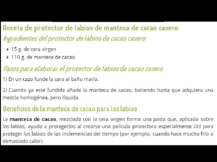MANTECA DE CACAO. COSMÉTICA