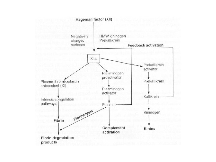 IMPORTANT NOTE • Activated Hageman factor (factor XIIA) initiates the clotting, fibrinolytic and kinin systems. The products of this initiation (kallikrein, factor XIIA, and plasmin, but particularly, kallikrein) can, by feedback, activate Hageman factor, resulting in significant amplification of the effects of the initial stimulus.