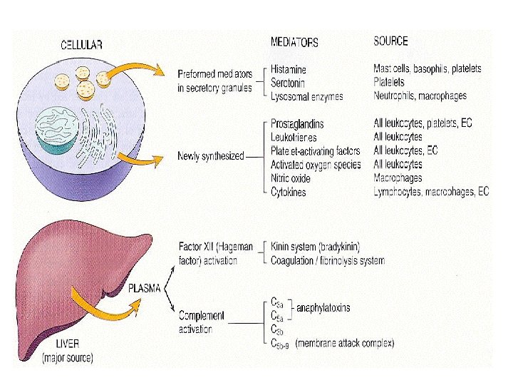 Chemical Mediators of Inflammation: • • • Locally produced Histamine Seratonin/5 HT Interleukins. Prostaglandins Leukotrienes • • Plasma derived Kinins Complements Coagulation system • Plasminolysis system • Others: H 2 O 2, NO