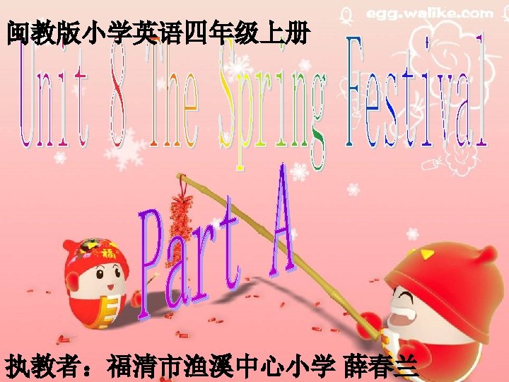 Sum-up! Words(单词): the Spring Festival, Chinese, spend, make rice cake, dumpling, family Sentences(句子): What’s the Spring Festival? It’s Chinese New Year. How do you spend the Spring Festival?