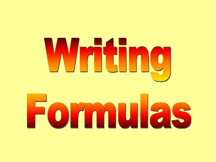 Writing formulas is a 3 step process: Example: calcium chloride 1. Write the symbols of the elements. Ca Cl 2. Put in the charges. Ca+2 Cl-1 3. Change the amount of the ions to make the charges cancel out. Ca. Cl 2
