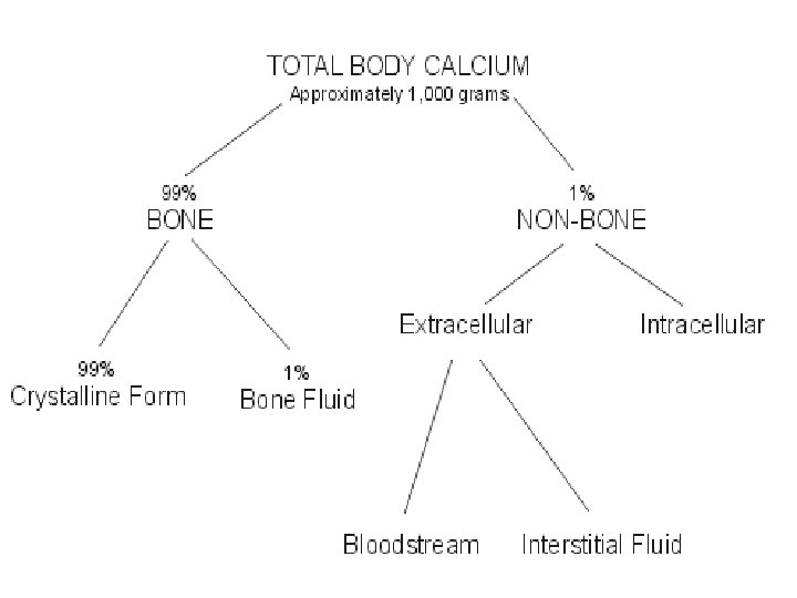 Calcium metabolism • • • 99% of total body calcium in the bone 1% in ICF , ECF , cell membranes * Calcium content 400 mg/kg in infant 950 mg/kg in adult * 50% ionized 40% bound to albumin. 10% citrate, phosphate